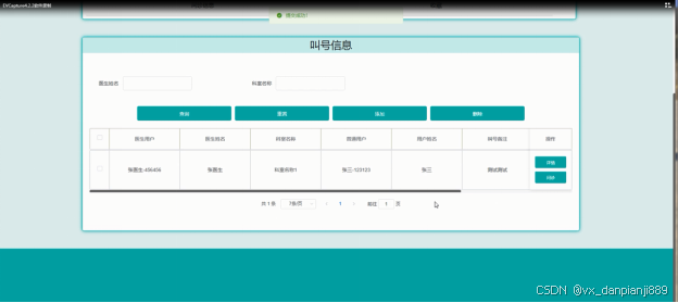 (6)叫号信息管理:管理员对前台用户提交的叫号信息进行管控,点击某一条预约挂号信息可进行详情查阅。