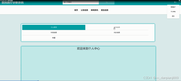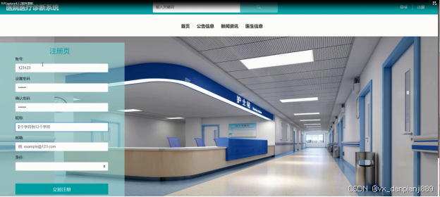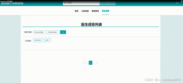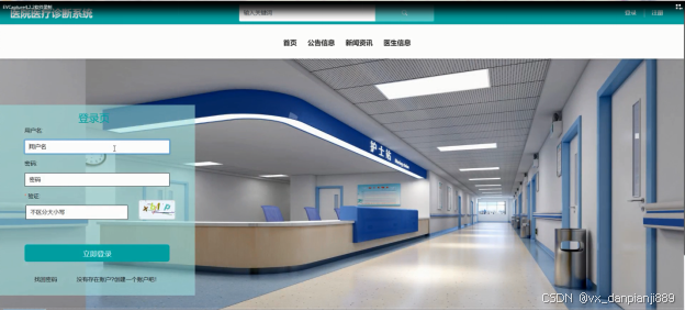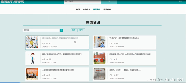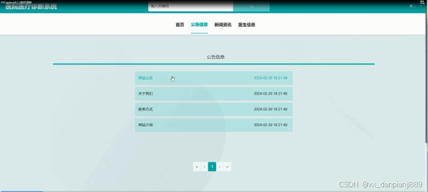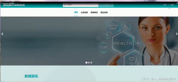 (2)查看医院医疗诊断系统的首页信息:医院医疗诊断系统的首页信息包含了公告信息、新闻资讯、医生信息等。