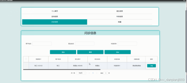 (9)问诊信息:医生可以查询普通用户提交的问诊信息,并对用户提出的咨询进行相对应的回复。