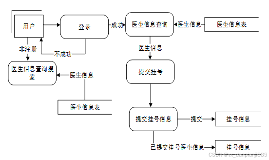 开发医院医疗诊断系统最主要的一个目的就是实现用户对医生的提交挂号,图2-4就是系统的数据流图。