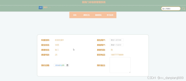 (7)挂号信息:普通用户可以提交需要科室的挂号信息。