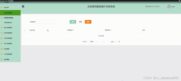 (3)科室信息管理:管理员点击“科室信息管理”菜单可以对科室信息进行增删改查。