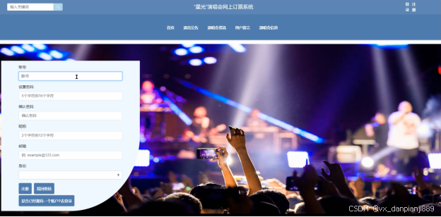The main functional modules of the online booking system for the "Starlight" concert include system users, concert information, booking information, cancellation of orders, member information, message management, etc. It adopts an object-oriented development model for software development and hardware installation, which can well meet the needs of practical use. It improves the corresponding software installation and program coding work, and adopts MySQL as the main storage unit for backend data, Using the SSM framework, Java technology, and Ajax technology for business system coding and development, all functions of this system have been achieved. This report first analyzes the background, role, and significance of the research, laying the foundation for the rationality of the research work. An analysis was conducted on the various requirements and technical issues of the online booking system for the "Starlight" concert, demonstrating the necessity and feasibility of the system. Then, a basic introduction was made to the technical software and design ideas required for designing the system. Finally, the implementation and deployment of the online booking system for the "Starlight" concert were carried out.