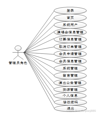 web后台管理上的管理员是维护整个“星光”演唱会网上订票系统中所有数据信息的。管理员角色用例如图2-4所示。