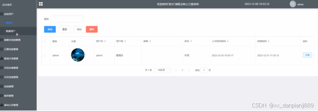 (2)系统用户:管理员点击“系统用户”这一菜单会显示管理员+普通用户这两个子菜单,管理员可以对这两个角色的信息进行增删改查操作。