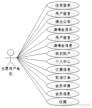 图2-3 “星光”演唱会网上订票系统普通用户角色用例图