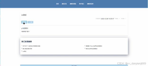 (2)演出公告:用户进行公告的阅览,查看管理者发布的公告信息。