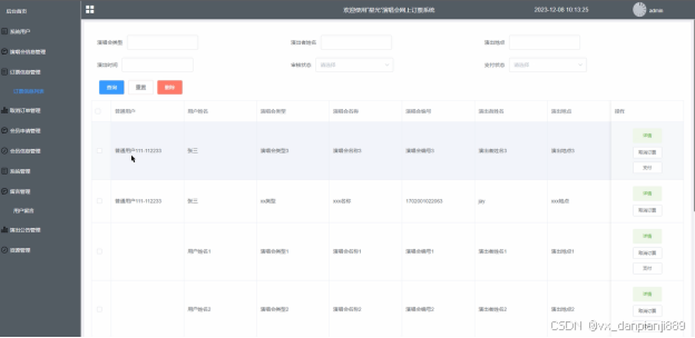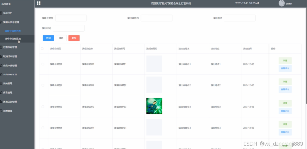 (3)演唱会信息:管理员点击“演唱会信息”这一菜单会所有的演唱会信息,管理员可以对演唱会信息进行增删改查操作。