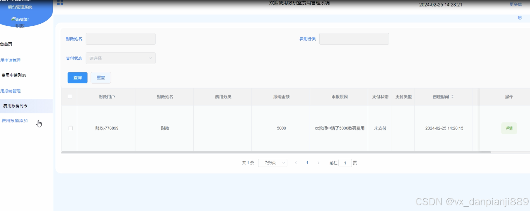 基于Spring Boot的教研室费用管理系统