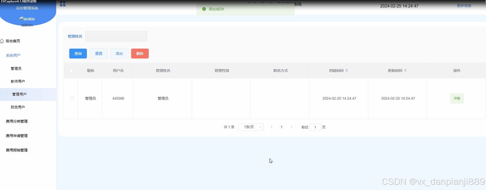 - 系统用户:管理员可以在系统用户模块进行系统用户的管理,包括添加新用户、修改用户信息、删除用户等操作,以保证系统的安全和正常运行。