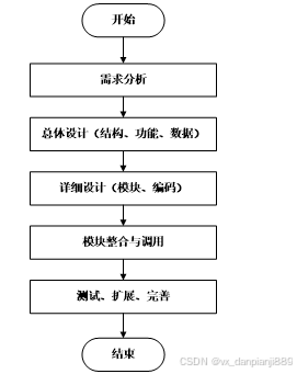 基于springboot的高水平游泳运动员信息管理系统开发时,首先进行需求分析,进而对系统进行总体的设计规划,设计系统功能模块,数据库的选择等,本系统的开发流程如图2-1所示。