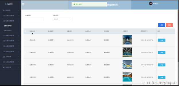 比赛信息管理: 管理员可以发布和管理比赛的详细信息,包括比赛时间、地点、参赛资格等。