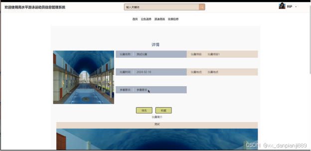 比赛信息: 运动员可以查看即将举行的比赛信息,包括比赛时间、地点、项目等详细信息。