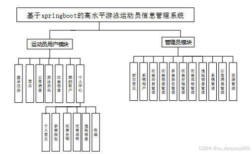按照基于springboot的高水平游泳运动员信息管理系统的角色,系统划分为了运动员用户模块和管理员模块这两大部分。