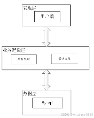 数据层(DL):由于宿舍报修系统的数据是放在服务端的mysql数据库中,因此本属于服务层的部分可以直接整合在业务逻辑层中,所以数据层中只有数据库,其主要完成宿舍报修系统的数据存储和管理功能。