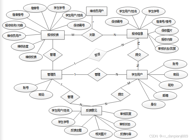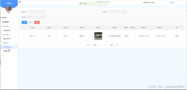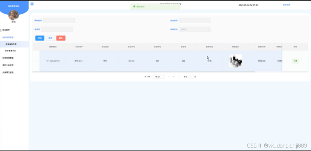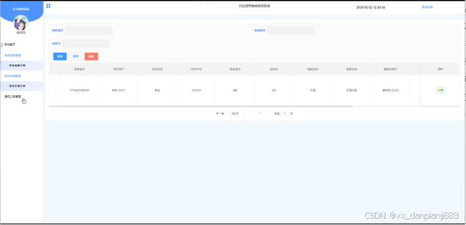 - 系统用户管理:管理员可以全面管理系统用户,包括管理员、学生用户、维修员用户。管理员能够执行增删改查操作,查看用户详情,并根据需要分配不同的权限和角色。