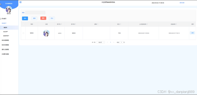 管理员可以全面管理系统用户,包括管理员、学生用户、维修员用户。管理员能够执行增删改查操作,查看用户详情,并根据需要分配不同的权限和角色,系统用户界面如下图所示。