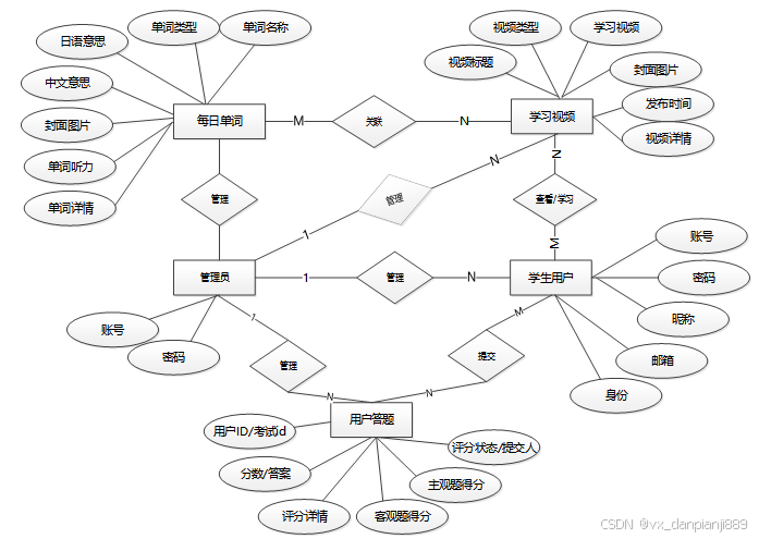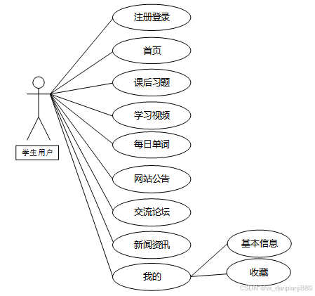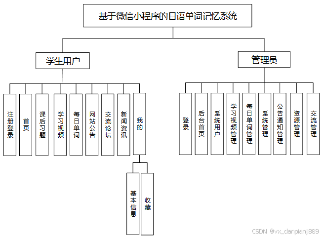 按照日语单词记忆系统小程序开发的角色,我划分为了学生用户模块和管理员模块这两大部分。