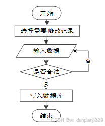 管理员可以对公告、新闻资讯等进行的修改,用户可以对自己权限内的信息进行修改,首先进入修改信息界面,输入修改信息数据,系统进行数据的判断验证,修改信息合法则修改成功,信息更新至数据库,信息不合法则修改失败,重新输入。修改信息流程图如图2-5所示。