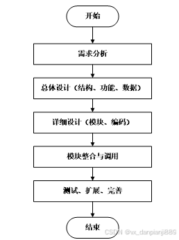 日语单词记忆系统小程序的开发,首先进行需求分析,进而对系统进行总体的设计规划,设计系统功能模块,数据库的选择等,本系统的开发流程如图2-1所示。