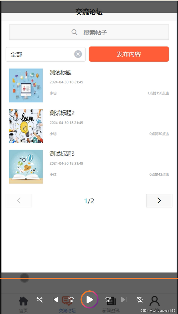 学生用户可以在交流论坛上浏览各用户发布的帖子内容,也可以自己发布新帖子参与讨论。他们可以通过搜索功能找到感兴趣的话题,并对喜欢的帖子进行点赞、收藏和评论,促进学习交流和社区互动。其界面如下图4-6所示。