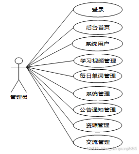 管理员是维护整个日语单词记忆系统小程序的开发中所有数据信息的。管理员角色用例如图2-8所示。