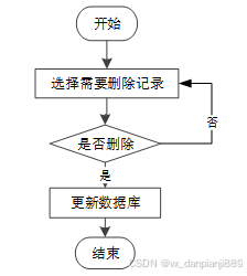管理员可以对公告、新闻资讯等进行信息的删除,对要删除的信息进行选中后,点击删除按钮,系统会询问是否确定,若点击确定,则系统会删除掉选中的信息,并在数据库内对信息进行删除,删除信息流程图如图2-6所示。