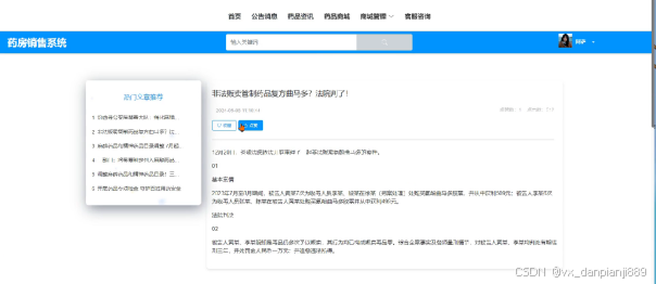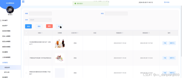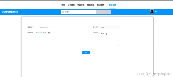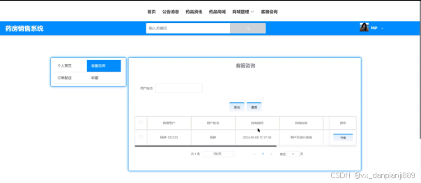 The system includes eight major modules, including drug inventory management, drug warehousing management, drug warehousing management, customer service consulting management, system management, announcement message management, resource management and mall management, aiming to realize the information management of the whole process of drug sales. Through the application of Spring Boot framework, the system has the characteristics of rapid construction, lightweight, easy expansion and so on, which provides a convenient and efficient solution for pharmacy sales management.