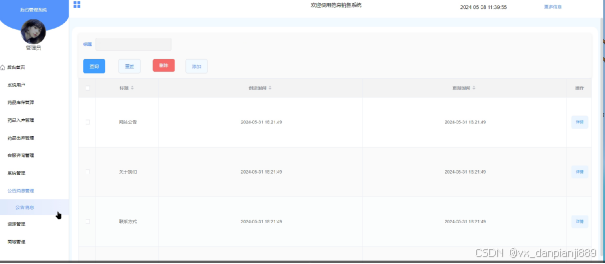 图5-11公告消息管理界面