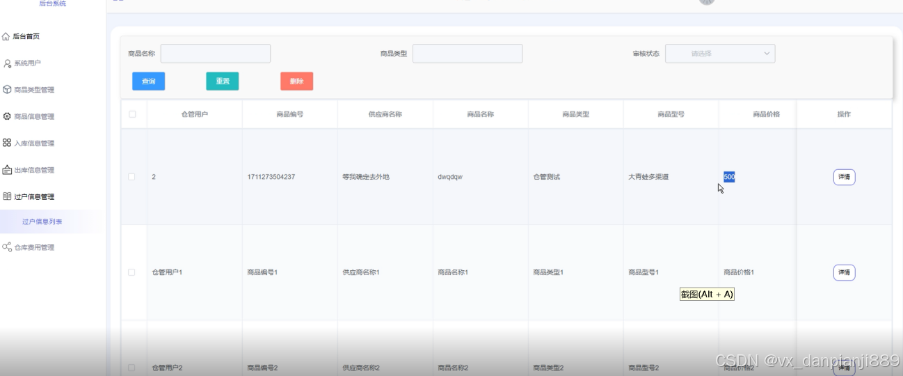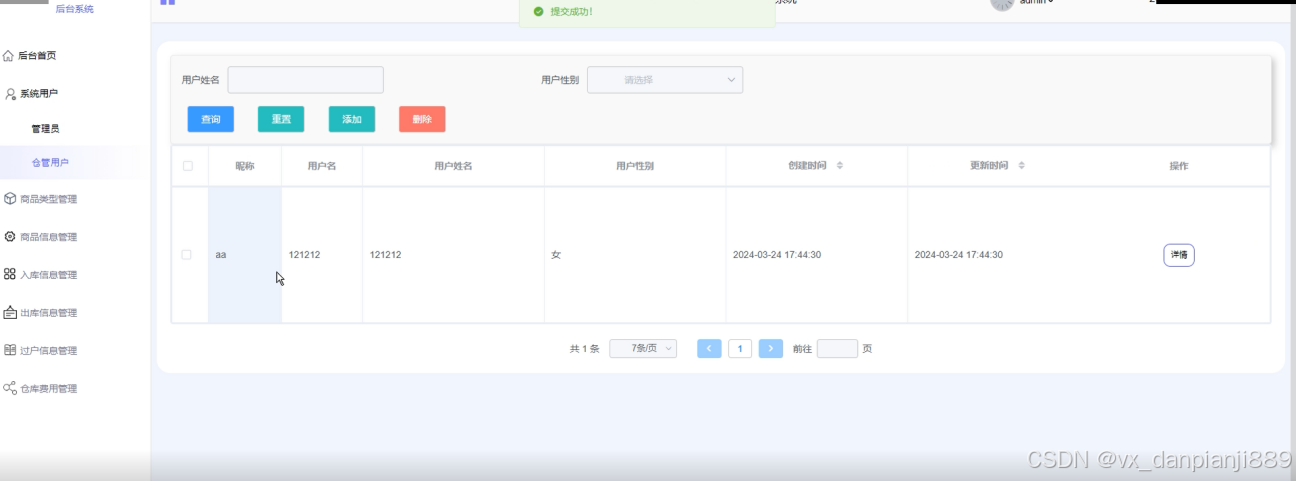 系统用户管理:管理员负责管理系统的用户,包括管理员和仓管用户的登录、权限分配等操作。他们可以添加、编辑或删除用户账户,并设定相应的权限。界面如下图所示。