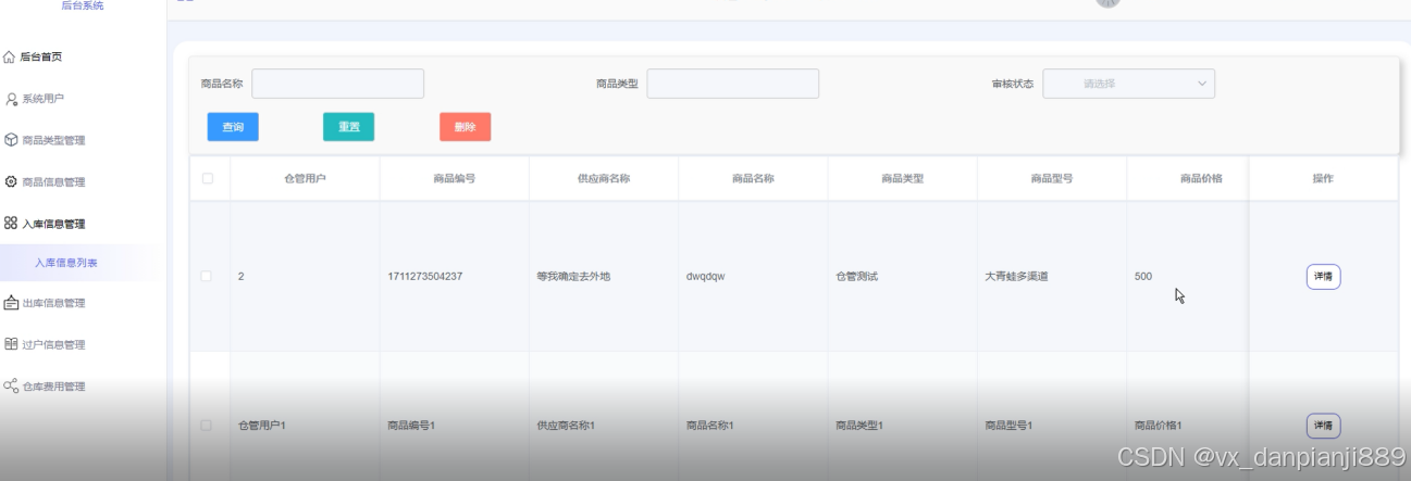 (1)后台首页:提供仓库管理系统的总体概况信息、数据统计分析等功能,可以让用户快速了解系统运行情况。