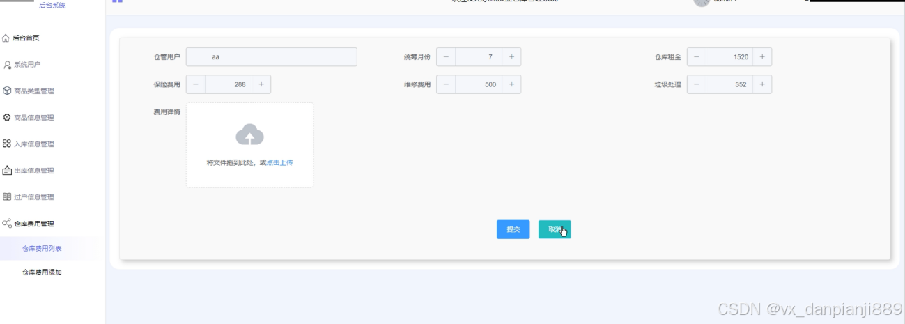 图4.7 仓管费用信息管理界面图
