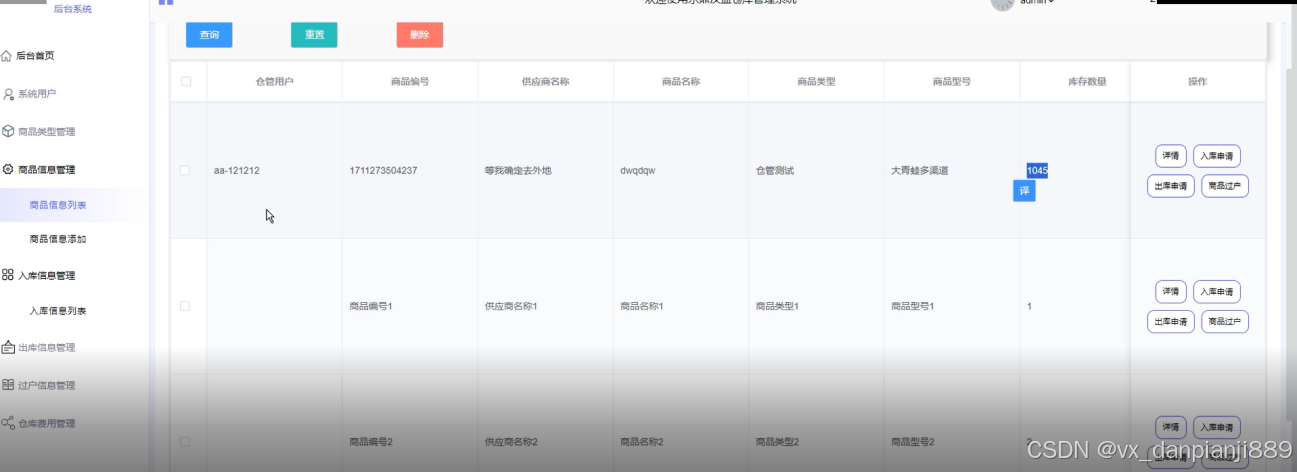 基于springboot仓库管理系统主要功能模块测试结果:通过编写东鼎汉盛仓库管理系统的测试用例,已经检测完毕用户的登录模块、商品信息添加模块、仓管费用信息模块、出过户信息添加模块的功能测试,在对以上功能得测试过程中,发现了系统中的很多漏送并进行了完善,经过多人在线进行测试,系统完全可以正常运行,当然在后期的维护中系统将不断完善。