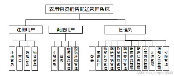 图3.1 农用物资销售配送管理系统功能模块图