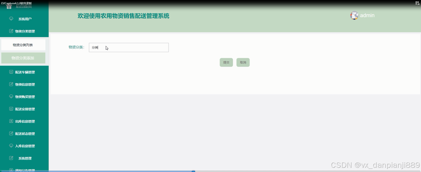 第4章 阐明了农用物资销售配送管理系统各个功能模块的实现,以图文的形式进行展示。