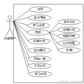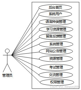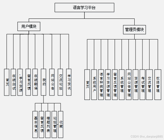 语言学习平台我划分为了用户管理模块和管理员模块这两大部分。