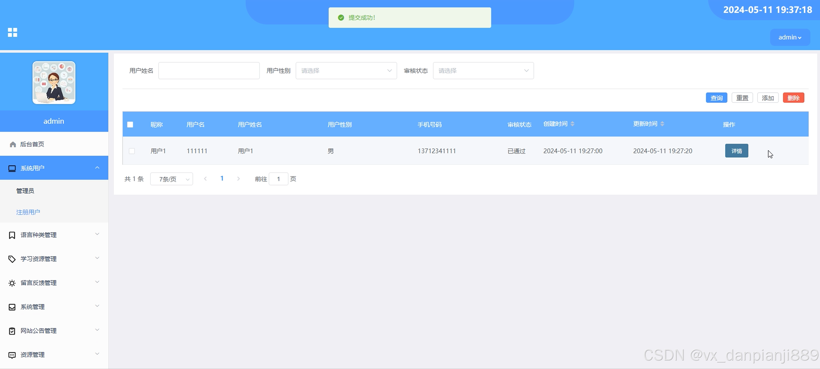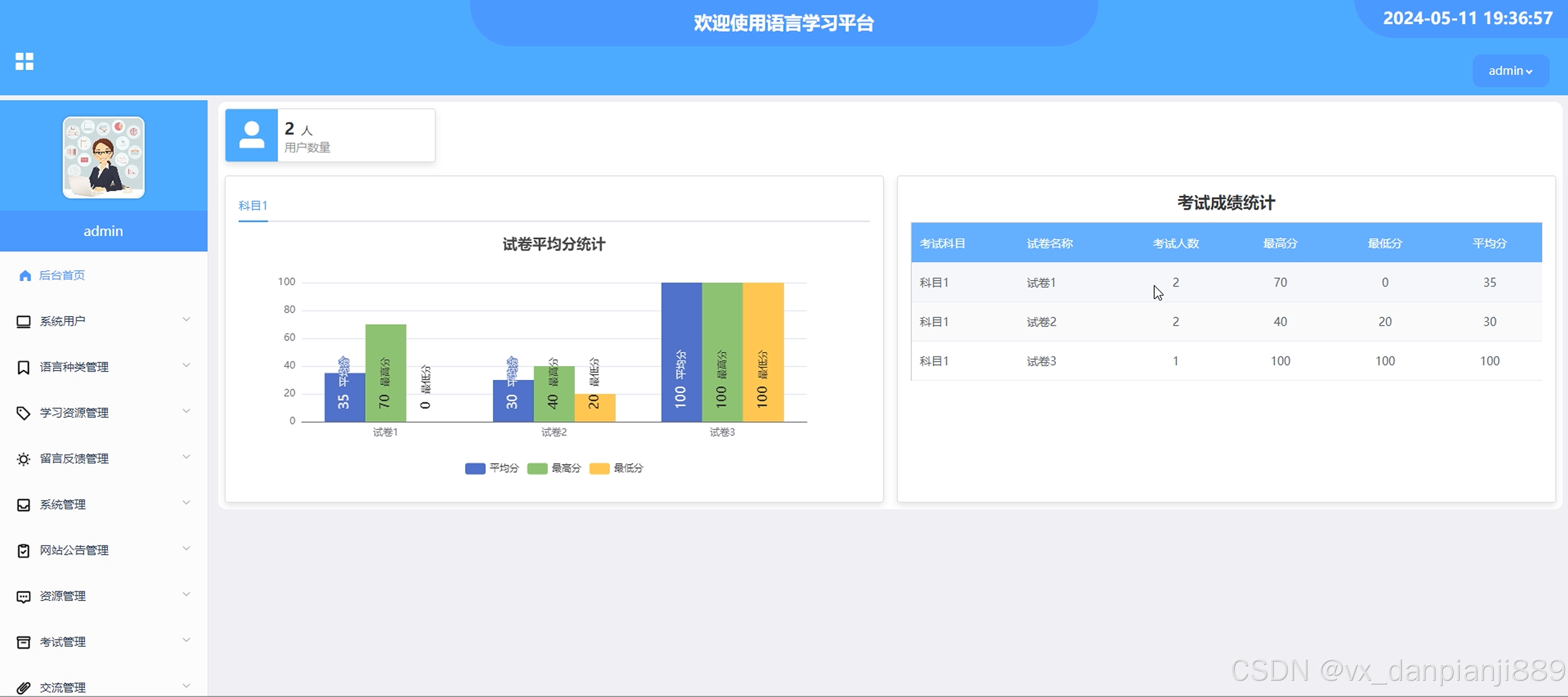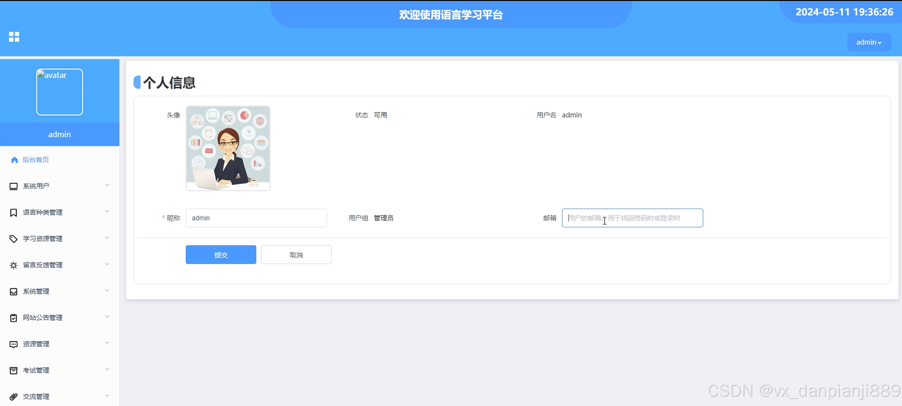 (2)语言种类管理:管理员可以管理平台支持的语言种类,包括添加、编辑、删除语言类别,以满足不同语言学习需求。
