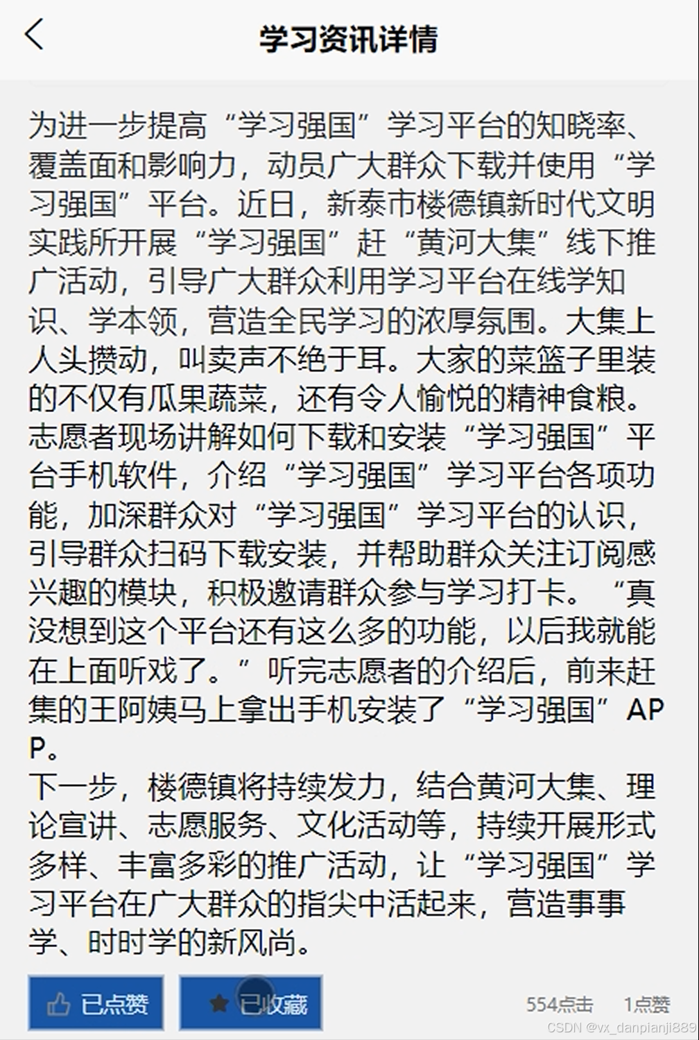 在学习资讯页面,用户可以轻松获取有关资讯的详细信息,还可以通过关键字快速搜索,同时还可以进行点赞、评论、收藏等功能,如图5-4所示。