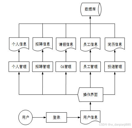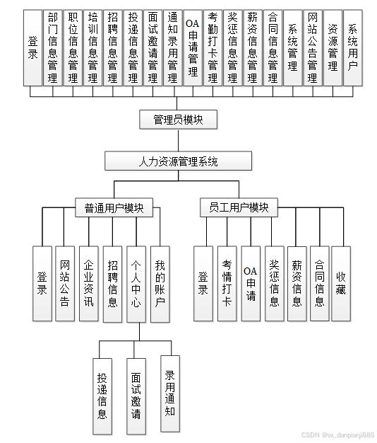 企业人力资源管理系统由前端用户界面和后端管理员界面组成。