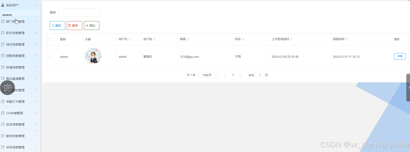 Key Words:Human resource management,The Springboot framework,The MySQL database