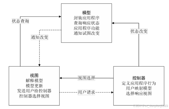 视图 是一种用户交互界面,它可以支持多种用户体验,但是在 MVVM 模式下,它仅仅负责收集和处理数据,以及响应用户的请求,而不涉及到业务流程的处理,而这些业务流程则由模型来完成。