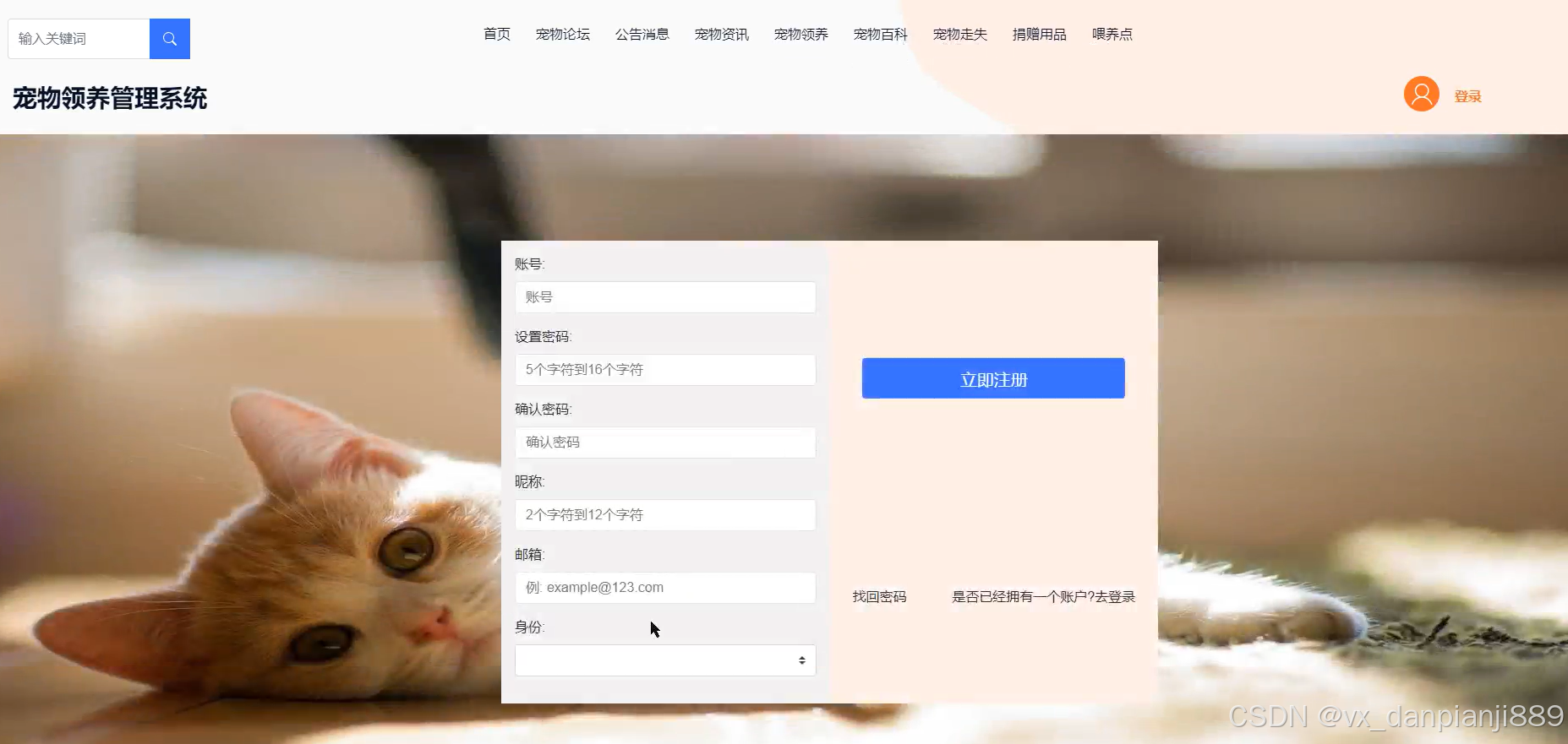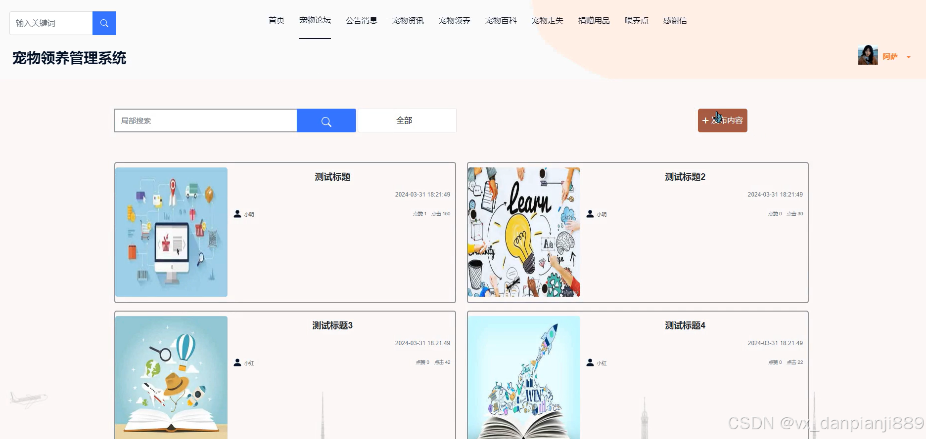 宠物领养管理系统是一个致力于促进宠物领养、宠物关爱和宠物信息分享的在线平台。本文基于Spring Boot框架,设计和实现了一个完整的宠物领养管理系统,包括普通用户和管理员两种角色,涵盖了用户注册、登录、宠物领养发布、宠物走失信息发布、宠物资讯查阅等功能模块。系统具有良好的用户交互界面和丰富的功能,为宠物爱好者提供了一个便捷的平台来交流、领养和关爱宠物。