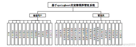 系统架构图属于系统设计阶段,系统架构图只是这个阶段一个产物,系统的总体架构决定了整个系统的模式,是系统的基础。宠物领养管理系统的整体结构设计如图4-2所示。