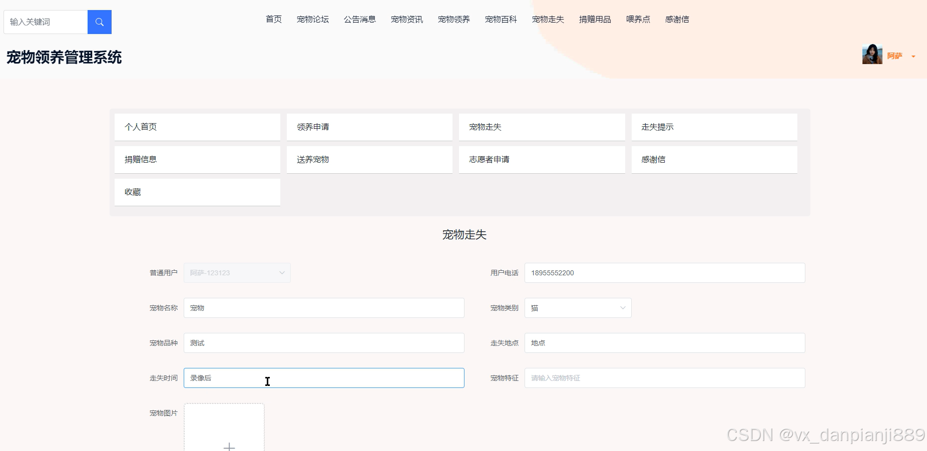 Finally, this article tests and evaluates the performance and user experience of the system, and the results show that the system performs well in response speed and user friendliness, and can meet the needs of users in pet adoption management. In the future, the user experience and scalability of the system can be improved by introducing more intelligent recommendation algorithms and social functions.