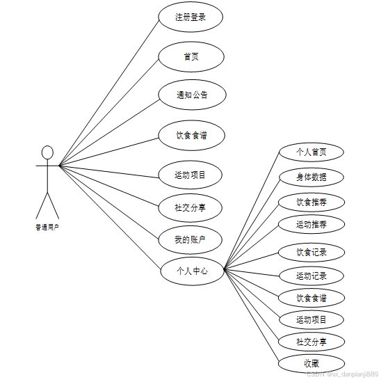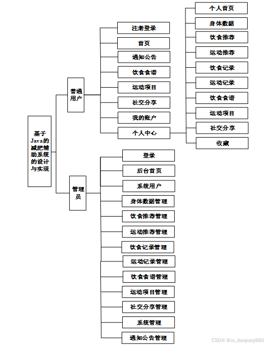 减肥辅助系统划分为了普通用户模块和管理员模块这两大部分。