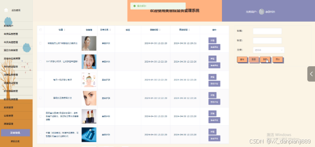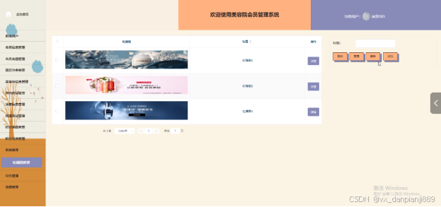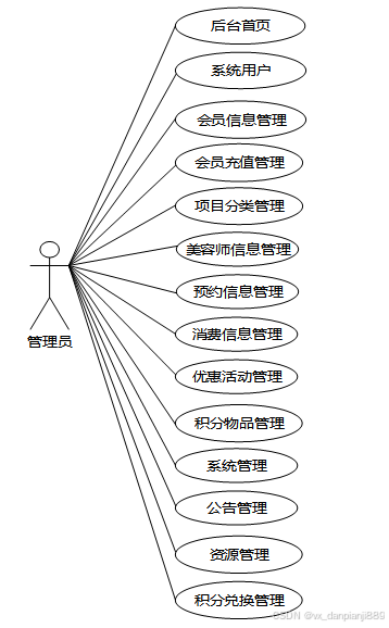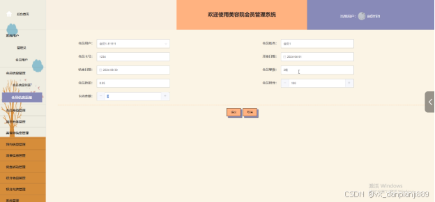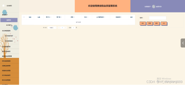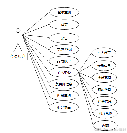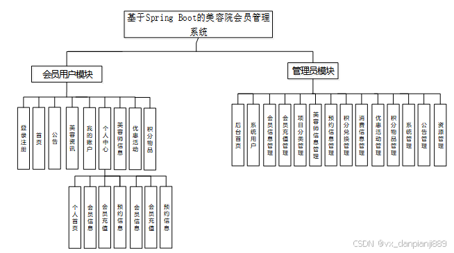 按照基于springboot的美容院会员管理系统的角色,系统划分为了会员用户模块和管理员模块这两大部分。