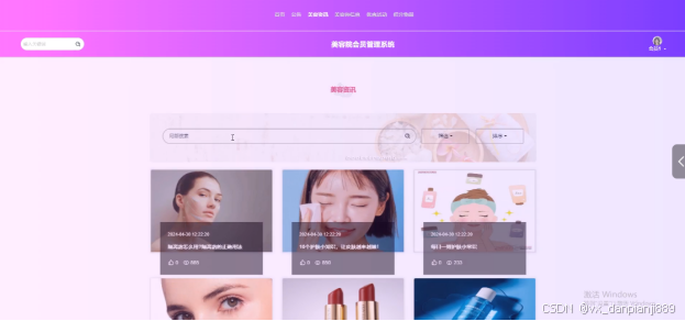 随着美容行业的快速发展,传统的会员管理方式已无法满足现代美容院的运营需求。为此,本文设计并实现了一个基于Spring Boot框架的美容院会员管理系统。该系统通过整合前后端技术,实现了会员信息管理、预约管理、消费记录查询、积分兑换等多项功能,有效提升了美容院的服务质量和会员满意度。