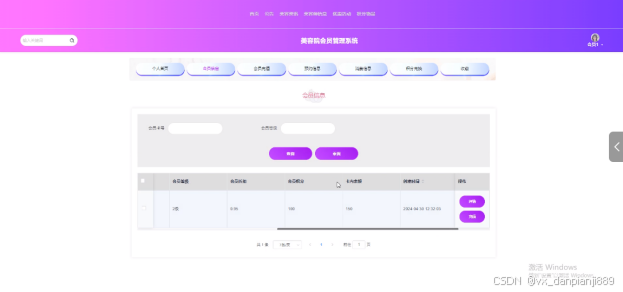 在系统设计中,我们采用了Spring Boot框架作为后端开发基础,利用其自动化配置、快速开发、跨平台等特点,简化了系统开发流程。同时,我们结合Vue.js等前端技术,构建了直观易用的用户界面,使会员能够方便地查询个人信息、预约服务、查看消费记录等。