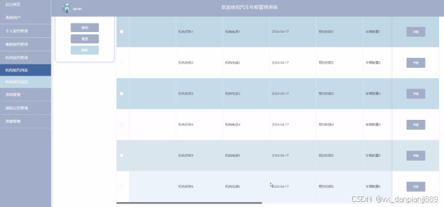 Through the implementation of this study, users can browse annual inspection information, view the location of annual inspection points, schedule annual inspection services, and manage personal annual inspection records in the system, providing a modern and intelligent annual inspection management tool for car owners. I hope this study can bring new ideas and technical support to the management of annual inspections of automobiles, promote the digital transformation and intelligent development of automobile safety management, and make positive contributions to social traffic safety.