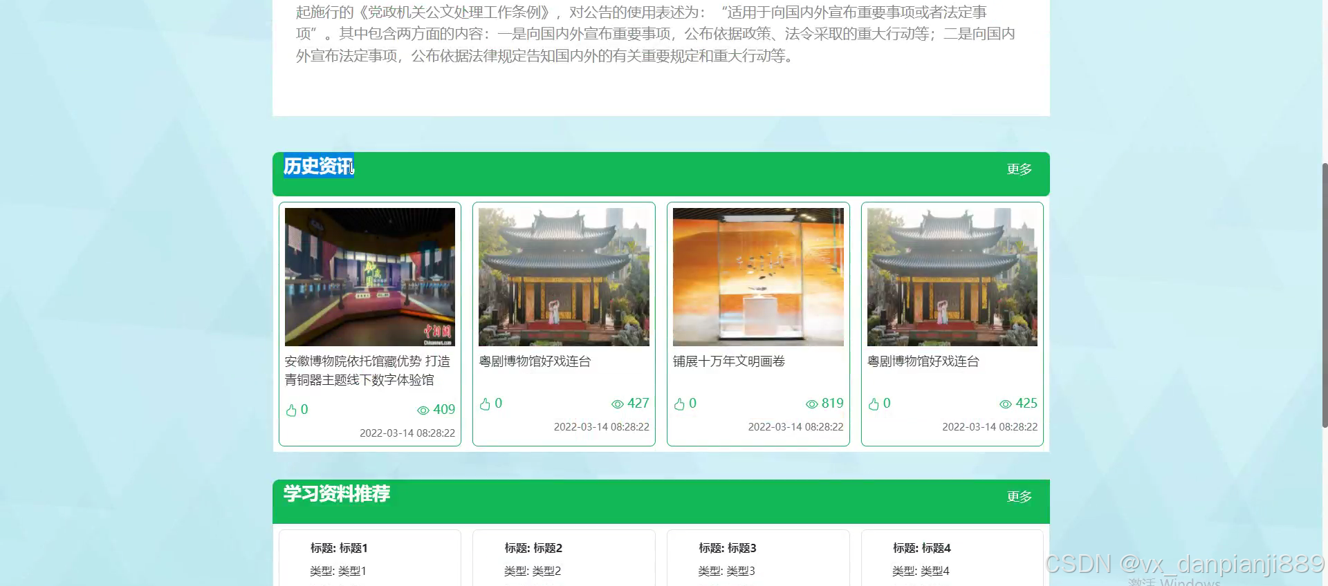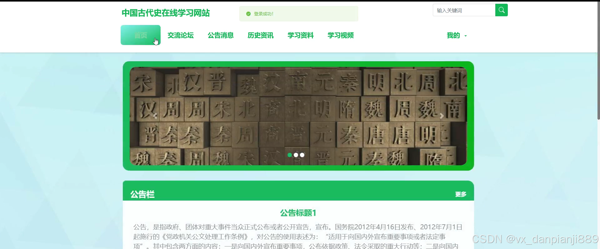 Springboot中国古代史在线学习网站